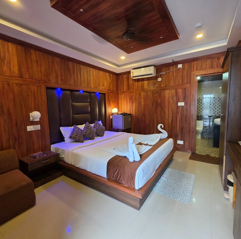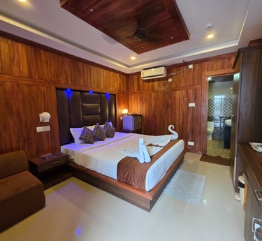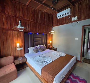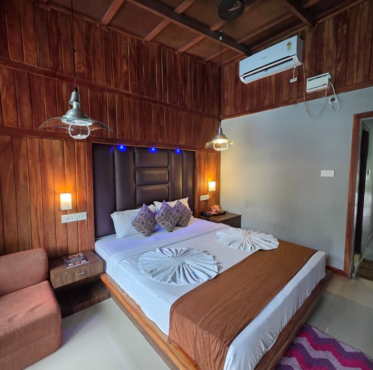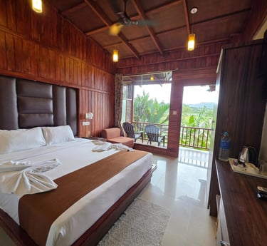 Our Studio rooms are base category with Garden facing rooms. The room are simply perfect with all basic amenities. Rooms are fitted with a king size beds. All rooms are furnished and designed with wood for guest comfort and the luxury stay in the property.